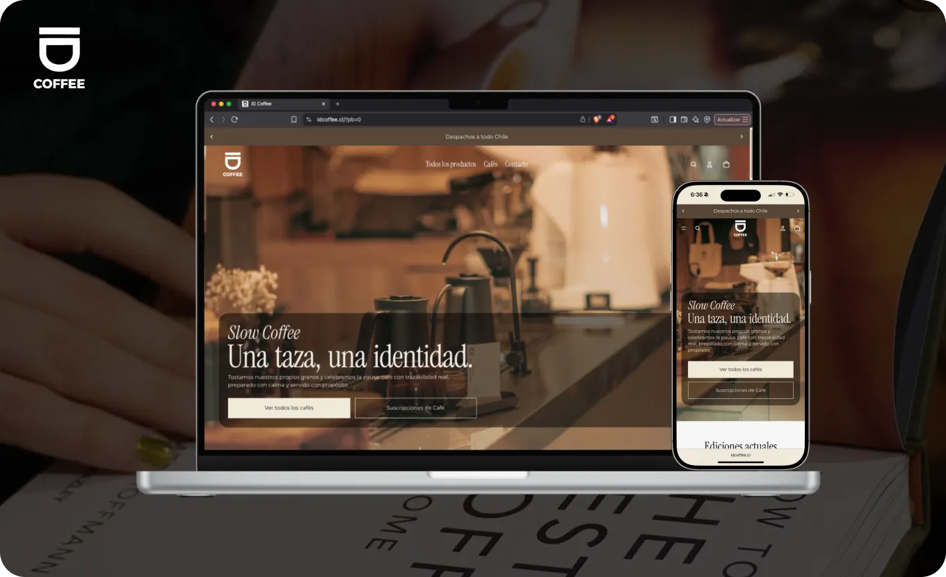 El proyecto consistió en la creación integral de su tienda online en Shopify, alineando el diseño y la experiencia digital con la identidad física de la marca. El objetivo fue abrir un nuevo canal de ventas y comunicación que acercara el café de ID Coffee a todo Chile, manteniendo intacto su propósito y esencia.